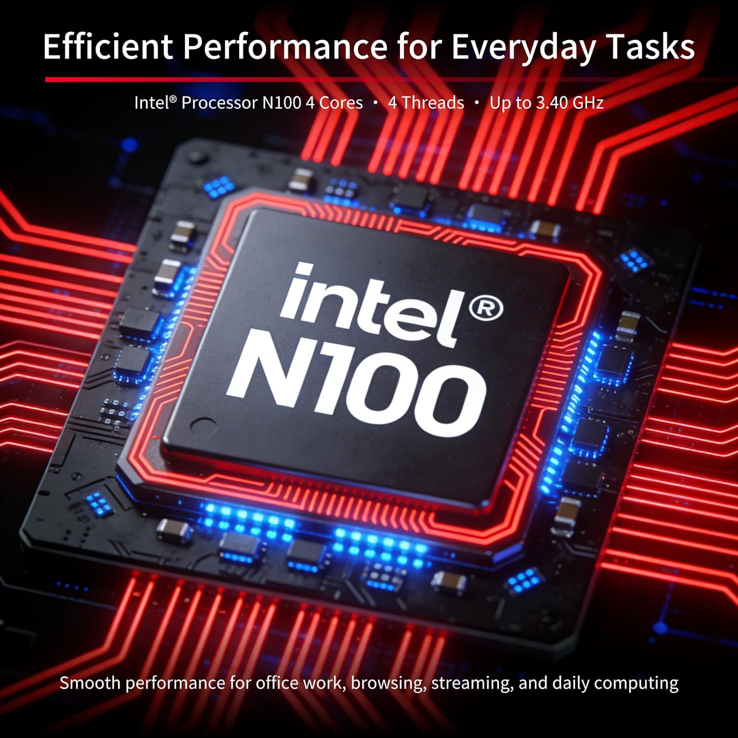 At the heart of the Lenovo A100 is the Intel Processor N100, a 4-core, 4-thread processor with a clock speed of up to 3.4GHz and a 6MB cache. This processor delivers responsive performance for multitasking, office applications, online learning, video conferencing, and web browsing. The integrated Intel UHD Graphics ensures smooth visuals for everyday computing and media playback, making it an excellent choice for users who require a balance of performance and efficiency.